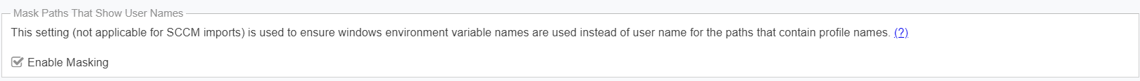 To comply with the European Union’s General Data Protection Regulation (GDPR), folder names that contain user information (Example: C:\Documents and Settings\Username) can be concealed using environment variables instead of hard-coded paths (Example: %HOMEPATH%).