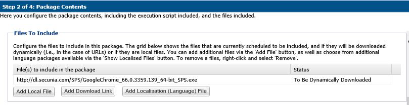 Confirm the updated patched version file appears under Files to Include in Step 2 of 4 of the Flexera SPS wizard and click Next.